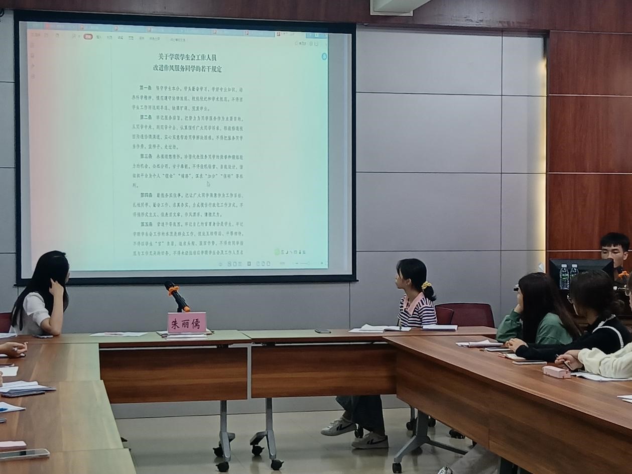 理论学习结束后,主席团成员赖美燕同学强调作为学生会工作人员,要始终牢记全心全意为同学服务的宗旨,做到从同学中来,到同学中去;同时还要加强党史知识的学习,提高思想政治觉悟。