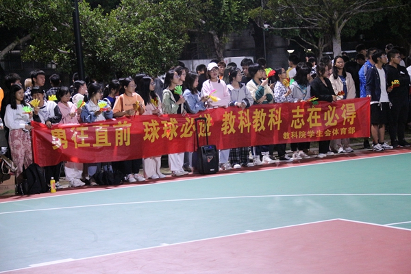 教科院学子自发组成现场拉拉队为球员们加油助威,“勇往直前,球球必进,教科教科,志在必得”的口号响彻现场,声音整齐响亮,体现了教科学子对全体球员的支持和鼓励,给予了球员们极大的信心。