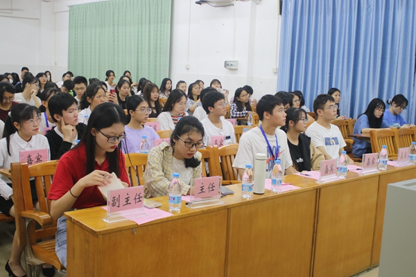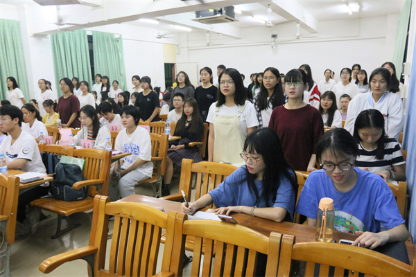 教科院勤工中心副主任何颖珊发表动员讲话,她表示雷阳启航活动是组织优秀高年级师兄师姐与大一新生进行一对一的结对活动。师兄师姐通过自身的成长经历,帮助新生在最短时间内适应大学生活,树立战胜困难的信心。希望引领队员和引领对象不忘初心,相互传递温情,温暖,温度。