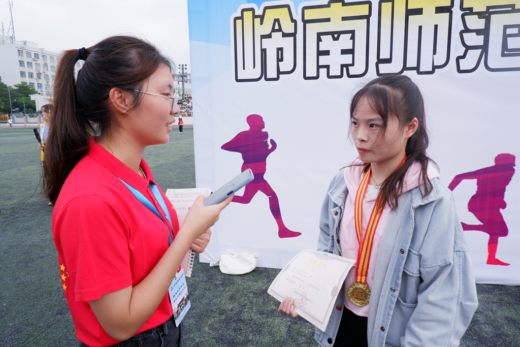 女子仰卧起坐团体赛代表谢秋铃与记者分享道:“队员们每天会一起进行训练,教练组织的训练活动积极完成,教练没空时,我们也会相互督促。”最后,她鼓励教科院的师弟师妹们:“如果有想做的事就勇敢大胆地去做,努力向前冲,竭尽所能地去向自己的目标靠拢。”