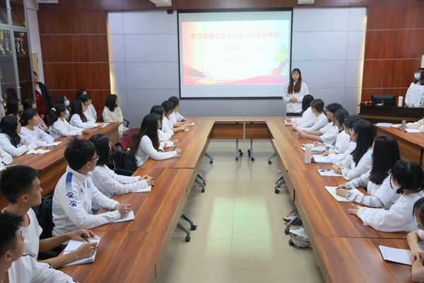 在学习交流环节,同学们就此次学习内容进行踊跃发言,现场气氛热烈。黄瑶瑶表示,十九届六中全会既是对历史经验的总结,也是对未来方向的指引。她表示,在未来她将坚定跟随党的步伐,踏踏实实地为人民服务;在日常生活中将继续学习党章党规,扎实思想理论基础,发挥党员先锋模范作用。入党积极分子李子豪对能参加此次会议深感荣幸,并提出作为一名入党积极分子要坚持学在前、做在前,不断学习,不断为人民服务。