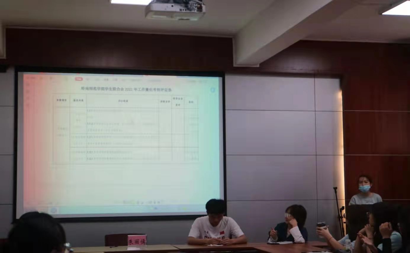 理论学习结束后,主席团成员赖美燕强调作为学生会成员,要始终牢记全心全意为同学服务的宗旨;同时对新学期工作进行了安排说明,并着重强调工作人员要学习与工作并重兼顾。