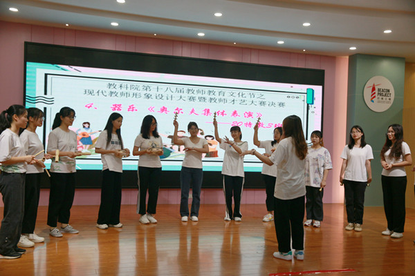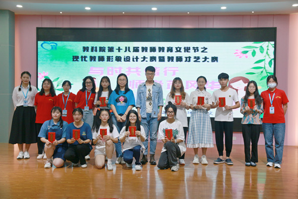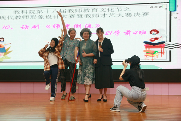 4月23日晚,教科院于教三311室举办第十八届教师教育文化节之现代教师形象设计大赛暨教师才艺大赛决赛。本次大赛以“与时共偕行,师者茂风华”为主题,旨在推动我院教师教育文化建设,引导师范生提前树立富含正能量、积极向上的教师形象,提高才艺能力,展现学生与时俱进、传承和发扬师风师德建设的精神风貌。教科院陈舒怡老师、贾晶老师、高京伟老师作为评委一同出席本次比赛。