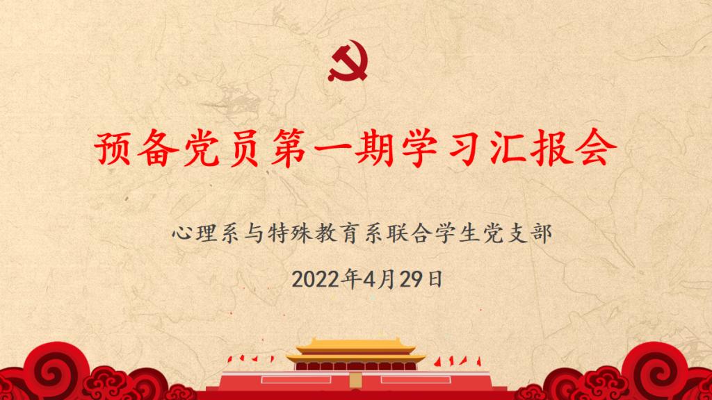 4月29日晚,教科院心理系与特殊教育系联合学生党支部在线上举办预备党员第一期学习汇报会。心理系与特殊教育系联合学生党支部书记苏贵老师、全体正式党员、预备党员参加本次会议。