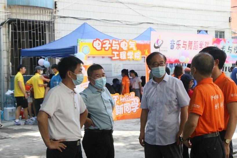 九月桂花香,迎新季又到。在疫情防控的前提下,教育科学学院于9月3-4日在校内顺利开展2022级迎新工作。为确保迎新工作高效有序的进行,做到让学生满意、家长放心、让新同学真正感受到如家般的温暖,教科院党委书记梁晋、院长范兆雄、正处级组织员郑赞芳、党委副书记陈理才、副院长陈金圣、副院长李继波亲临现场指导迎新工作,教科院各系老师、各班助班、八大机构学生干部与志愿者们也积极参与迎新工作。