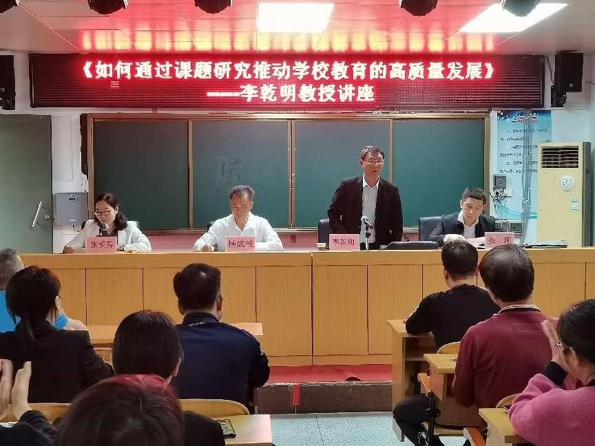 本次讲座的主讲人为李乾明教授。活动主持人张爱萍老师首先对李乾明教授进行简要介绍,现场掌声雷动,学习氛围浓厚。接着李乾明教授先做了自我介绍,谈起这次讲座是第二次廉江之行,然后从“如何通过课题研究推动基础教育的高质量发展”理论概述和出路探寻两方面出发,为在座的教师带来了有深度、有高度的教育思想大餐。