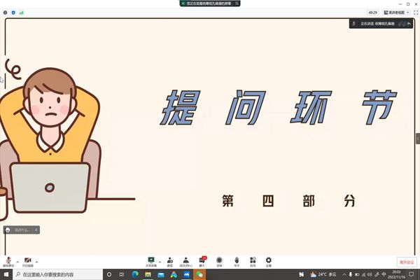 在提问互动环节中,与会工作人员积极提出自己心中的疑惑,孔佩珊同学耐心倾听后为其进行了详细解答,整体气氛轻松、活跃。