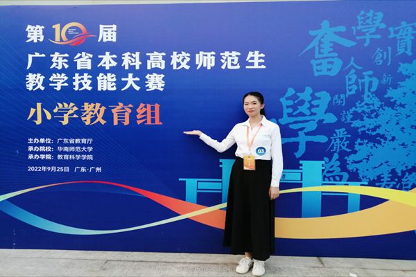 关于参加广东省本科高校师范生教学技能大赛,李俊怡认为最终收获的成绩离不开学院与老师们的教育。她谈到学院教师教育文化节的磨炼、学院的丰富资源、小教课程设置的专业性、专业老师的悉心指导、加入广东省梁桂云名教师工作室都是她赛前最充分的准备与底气。虽然由于赛制有调整转变,面临比较大的挑战,但指导老师孜孜不倦的教诲是她最大的前进动力。谈到时间的分配上,她表示在准备比赛期间的学业任务也很繁忙,提前做好规划,合理制作时间计划表显得非常重要。