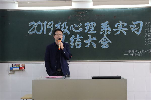 为巩固学生实习成效,进一步推进高质量实习成果展示,3月8日下午,岭南师范学院教育科学学院2019级心理系专业于教四c栋706室举行实习总结大会。教科院党委副书记陈理才、副院长李继波、心理系主任陈秀芹、心理系6位实习指导老师、辅导员李水清及19级、20级心理系全体同学出席此次会议。