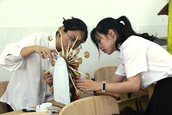 在比赛过程中,选手们结合自身兴趣,找准设计方向,理清设计思路,精心制作出一件件构思巧妙、玩法多样的教具和学具,并依次向评委和观众展示与讲解作品。