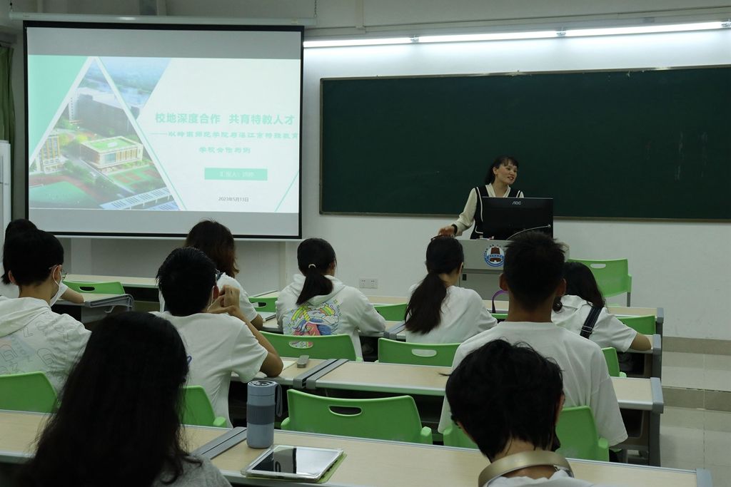 为进一步推进岭南师范学院特殊教育专业建设与发展,多元融合共育特教人才,5月13号下午,教科院于教五C-207室召开2023“新师范”建设学术研讨会个性报告讲座之特殊教育专业。湛江市特殊教育学校主任洪婷、教科院杨溢老师、汪慧老师及21特教、22特教全体同学出席了本次讲座。