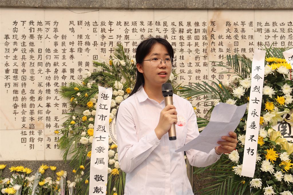 祭扫活动在庄严的国歌中开始。师生向革命烈士纪念碑敬献花圈,并默哀三分钟,向革命烈士哀思致敬。随后,大家瞻仰革命烈士纪念碑。学生党员代表李俊怡在发言中,讲述了红色校史人物黄学增烈士的英雄事迹,并勉励大家传承英烈精神,赓续红色血脉,奋发有为,为党和国家事业做出积极贡献