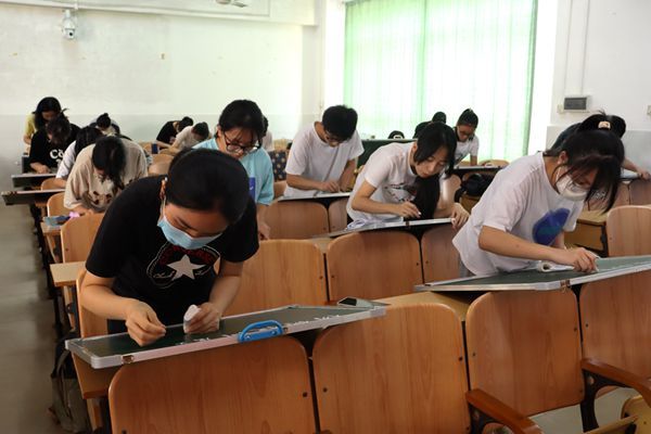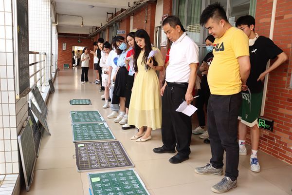 此次比赛共设立粉笔、毛笔和硬笔三个比赛项目,经历初赛、决赛两个阶段,最终95位选手脱颖而出进入决赛。参赛选手在规定的时间内,现场完成规定的书法作品,评委现场打分。选手们尽情展示书写功底,粉笔字书写规范、整洁,整体版面设计美观;钢笔字下笔刚劲有力,笔画清楚、字距匀称,笔画流畅、分布均匀;毛笔字字体结构合理、端正,尽显书法魅力。