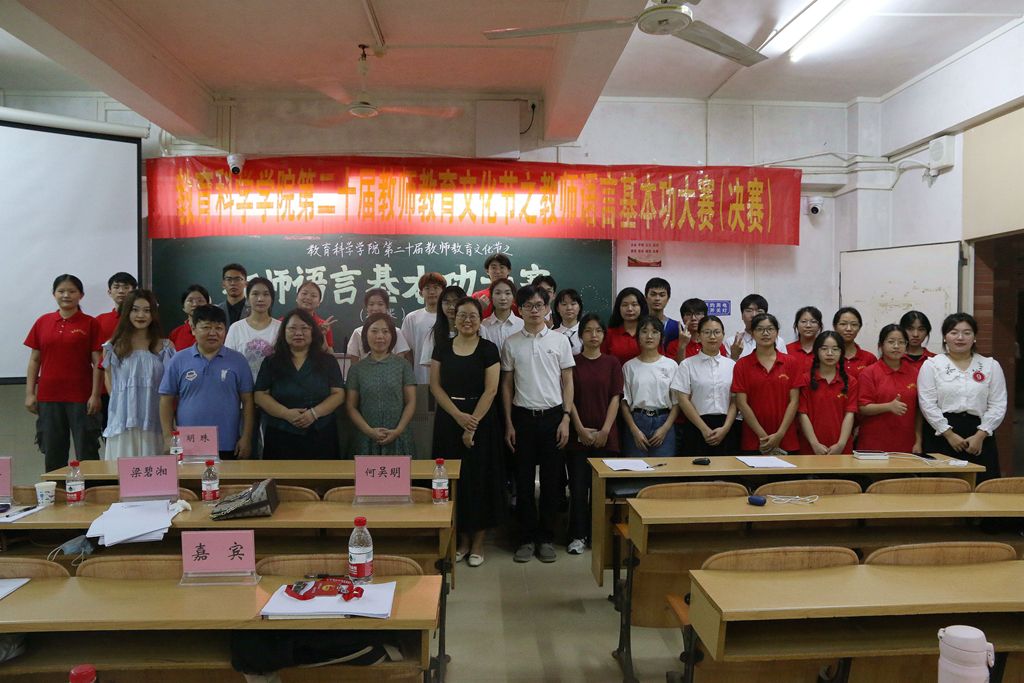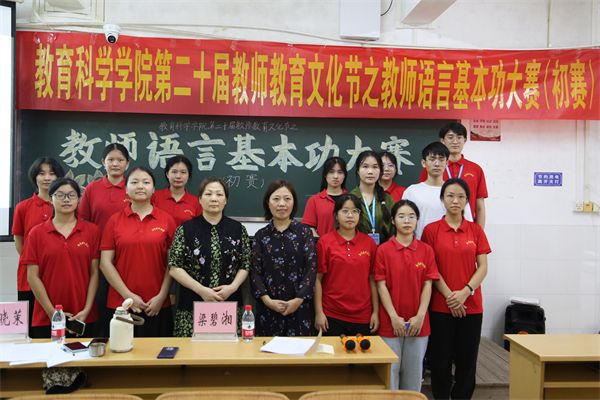 为进一步提升我院师范生专业素养,促进教师专业发展,夯实教师基本功,落实“立德树人”的根本任务。近期,教科院第二十届教师教育文化节之教师语言基本功大赛于教四C栋412、413室举办。教育科学学院梁碧湘老师、王晓茉老师、白梅红老师、邱俊杰老师、何吴明老师、卢祖琴老师、明珠老师担任本次比赛的评委。