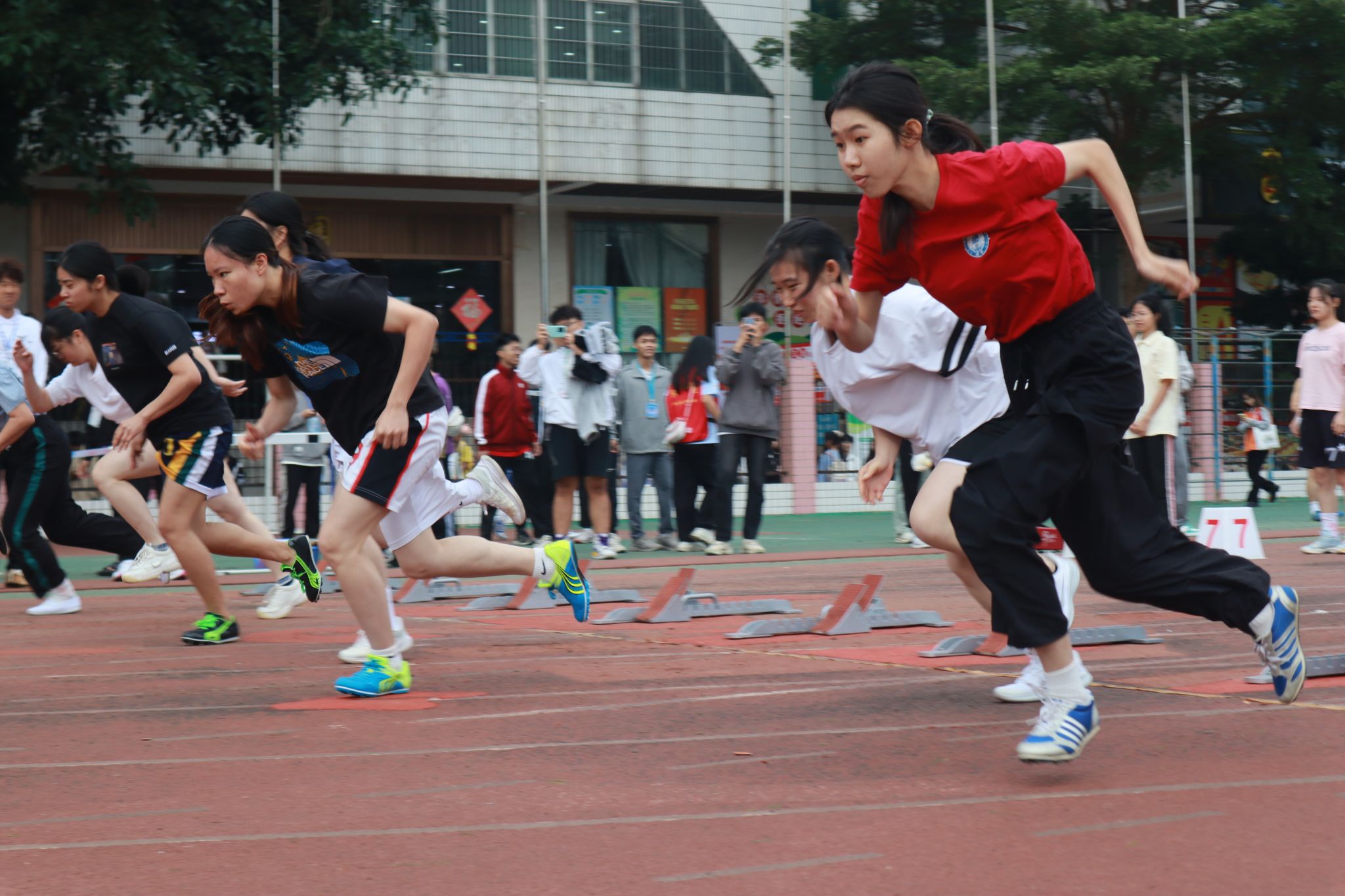 运动场上人声嘈杂,微风渐起。但跑道上的氛围稍显紧张,运动员屏息聚气,只待一声枪响。沈怡美双手撑地,脚尖触地,目光看向终点。发号枪响,她如同脱缰之马般冲了出去,在震耳欲聋的加油声中奔向终点。