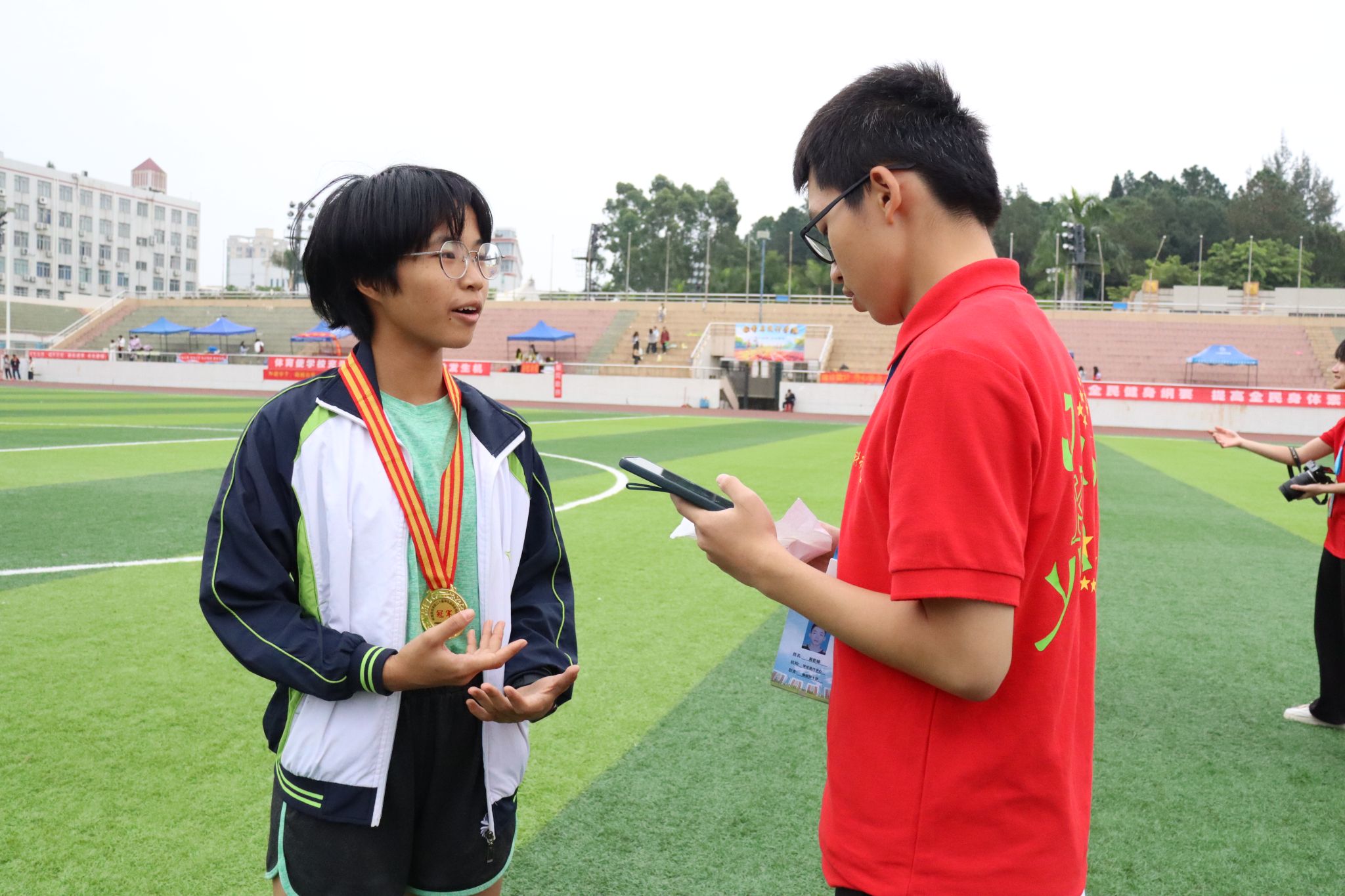 当喜讯传来,龙飘婷表现得十分的开心和激动。在赛后采访中,问及平时如何训练才能够在今天取得好成绩时,她认为靠的是严格要求自己和教练的悉心指导,并在教练科学的指导下提升自己。她衷心地感谢一路同行的每一个人,她能在赛场上一往无前地奔跑,离不开训练时教练的培养和伙伴们的鼓励,离不开现场工作人员的帮助和观众们的热烈支持。正是因为他们的陪伴与期望,给予了她更大的前进动力,激励他不断挑战,超越自我。在询问参加 400 米决赛和 800 米决赛并获奖的经验时,她表示,师弟师妹们平时应多运动,提高自身的身体素质。