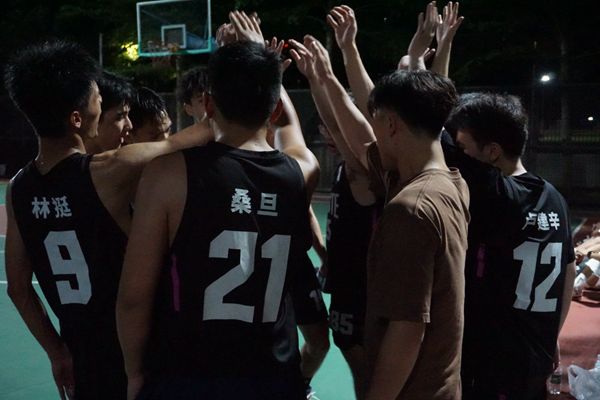 随着裁判一声哨响,21级联队与22级联队之间的对决正式开始。21级联队凭借队员们之间的默契配合,顺利拿下本场比赛的首分。22级联队不甘示弱,奋起追赶,成功把比分拉了回来。两队球员们的实力不相上下,比分你追我赶,加时赛临近结束时,已是深夜11点,然而双方比分仍旧持平,胜负难分。场外宁静的校园,月色如醉;场内少年们的汗水,闪耀夺目。场下观众们的心被球员们投出的每一个球紧紧地牵动着,大家都在享受着这场非凡的视觉盛宴。最后21级联队的袁梓晟以一个精彩的三分球成功为本队夺得最终的胜利,刹那间,球场上响起了如雷一般的掌声。这场师兄师弟之间的角逐,大三师兄略胜一筹,但大二师弟们的出色表现同样被观众们称赞。