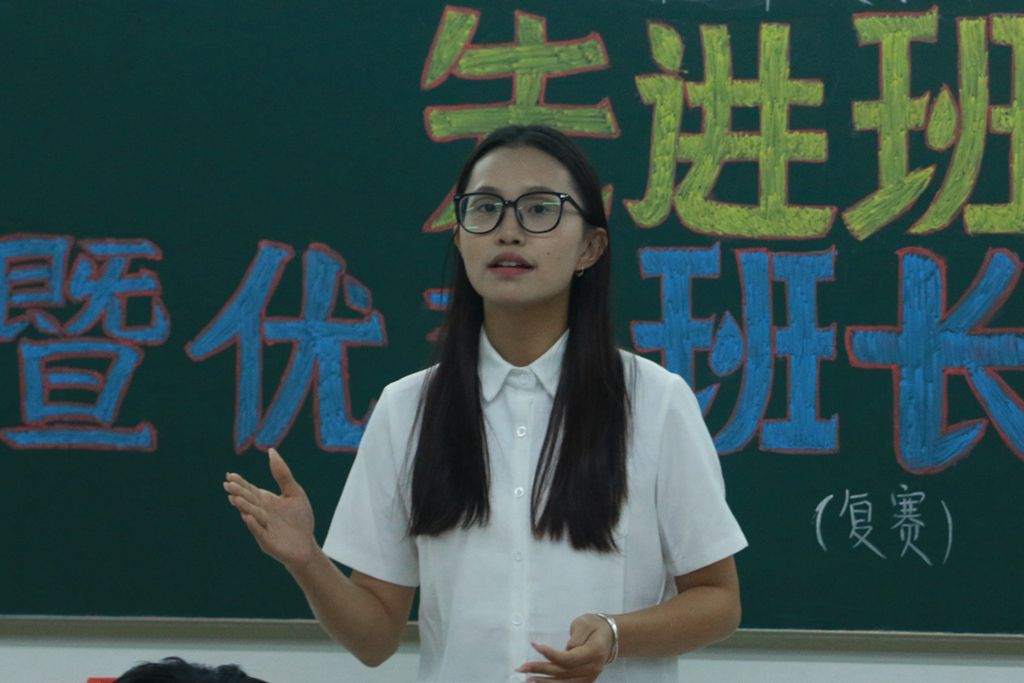 紧接其后的优秀班长评选环节,同样亮点纷呈。各班优秀班长候选人依次登台,发表竞选演讲。他们立足自身成长与工作实践,围绕自我能力提升、班级引领举措、服务同学意识强化等关键维度,敞开心扉,分享任职期间的酸甜苦辣,将宝贵经验与心路历程一一呈现。演讲完毕,现场进入紧张的抽题作答环节,候选人随机抽取具有代表性的问题,稍作思忖,便结合日常工作中的真实经历,有条不紊、从容自信地阐述观点,清晰的逻辑、敏捷的思维,尽显班长们扎实的综合素质与出色的应变能力,赢得阵阵掌声。