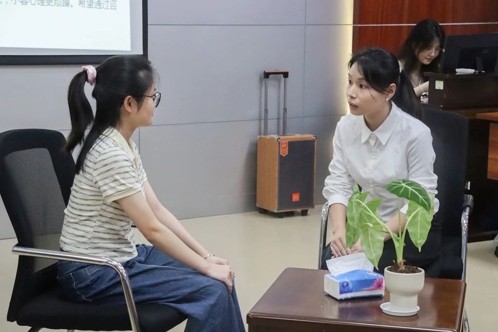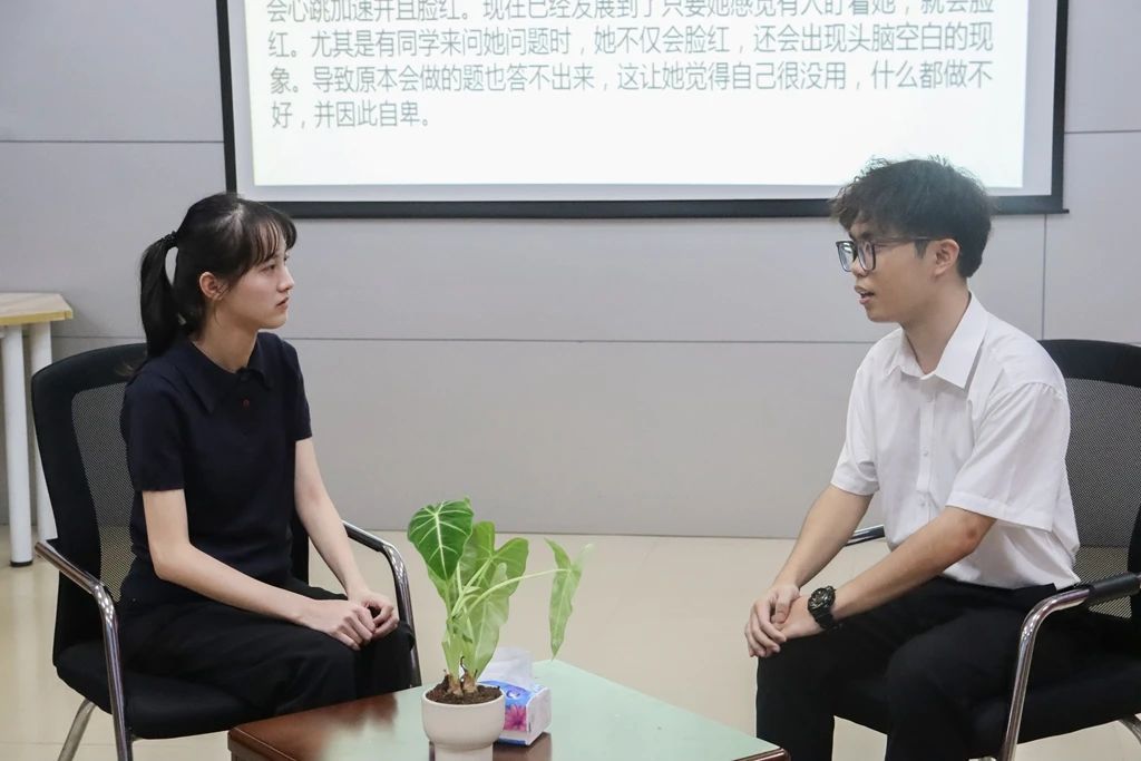 比赛由现场模拟咨询、咨询思路阐述、评委提问三个环节组成。在现场模拟咨询环节,面对带有心理问题或困扰的来访者,选手们运用专业知识与沟通技巧,通过耐心倾听、共情回应和恰当引导,逐步探索来访者内心困惑,帮助其梳理情绪、寻找解决路径。模拟结束后,选手需在咨询思路阐述环节,清晰阐释自己的理论依据,并在评委提问环节,沉着应答,展现对专业知识的理解与应用能力。