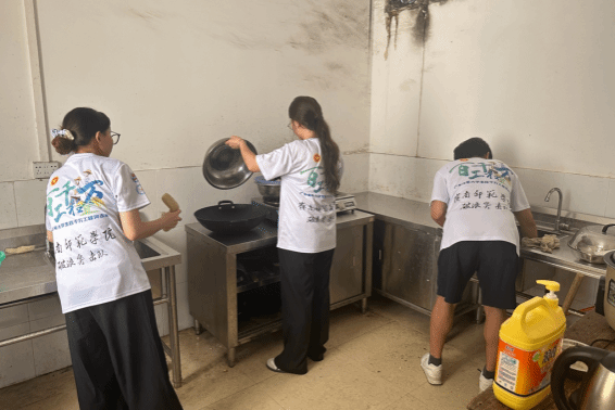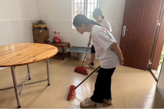 正午时分,队员们顺利到达北界镇学地小学,炎炎烈日也抵挡不住队员们火一般的热情。在简单收拾完个人行李后,队员们兴奋地开始考察学地小学以及周边环境,与学地小学的校长植仁隆一同了解当地小学的办学经验和现状、了解小朋友们的在校以及家庭情况。随后,大家开展大扫除,对教室卫生进行全方面清洁,全力为下乡活动顺利开展做好充分准备,确保以崭新的面貌迎接学生们的到来。