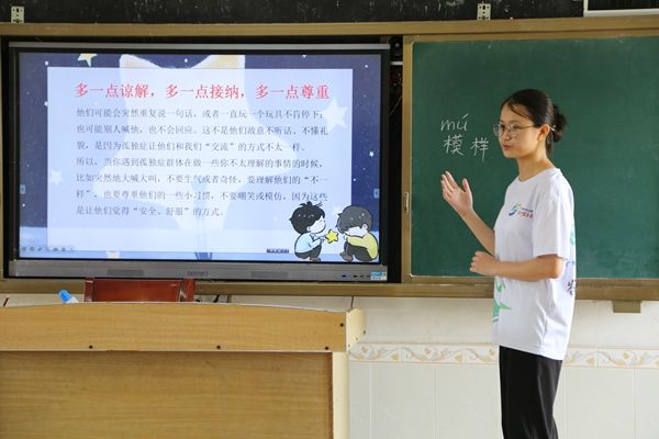 “他们就像天上的星星一样,在自己的小小世界里散发着独特的光芒。”在孤独症科普课堂上,管嘉慧用形象的比喻打开了孤独症的大门,激起了同学们的好奇心。通过生动的动画短片以及真实案例,她深入浅出地向同学们讲解了孤独症的行为特征以及与孤独症相处的方法,带领他们逐渐理解“星星的孩子”独特的内心世界。这堂科普课,是一次心灵的相撞,同学们不仅收获了知识,更学会了以包容为帆、关爱作桨,驶向理解与接纳的彼岸,让“星星的孩子”不再孤独。