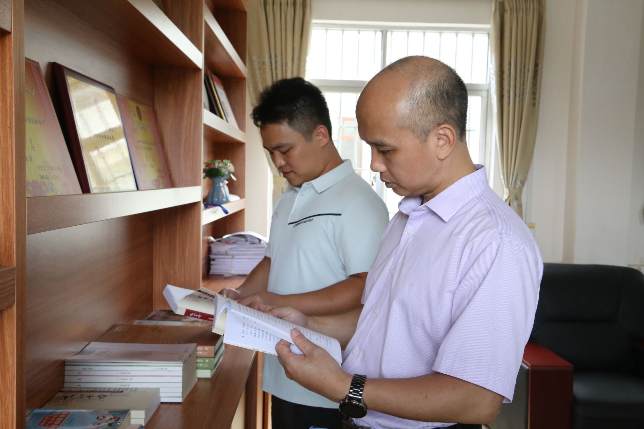 教科院党委副书记陈理才与学地小学校长植仁隆沟通交流(陆映柔摄)