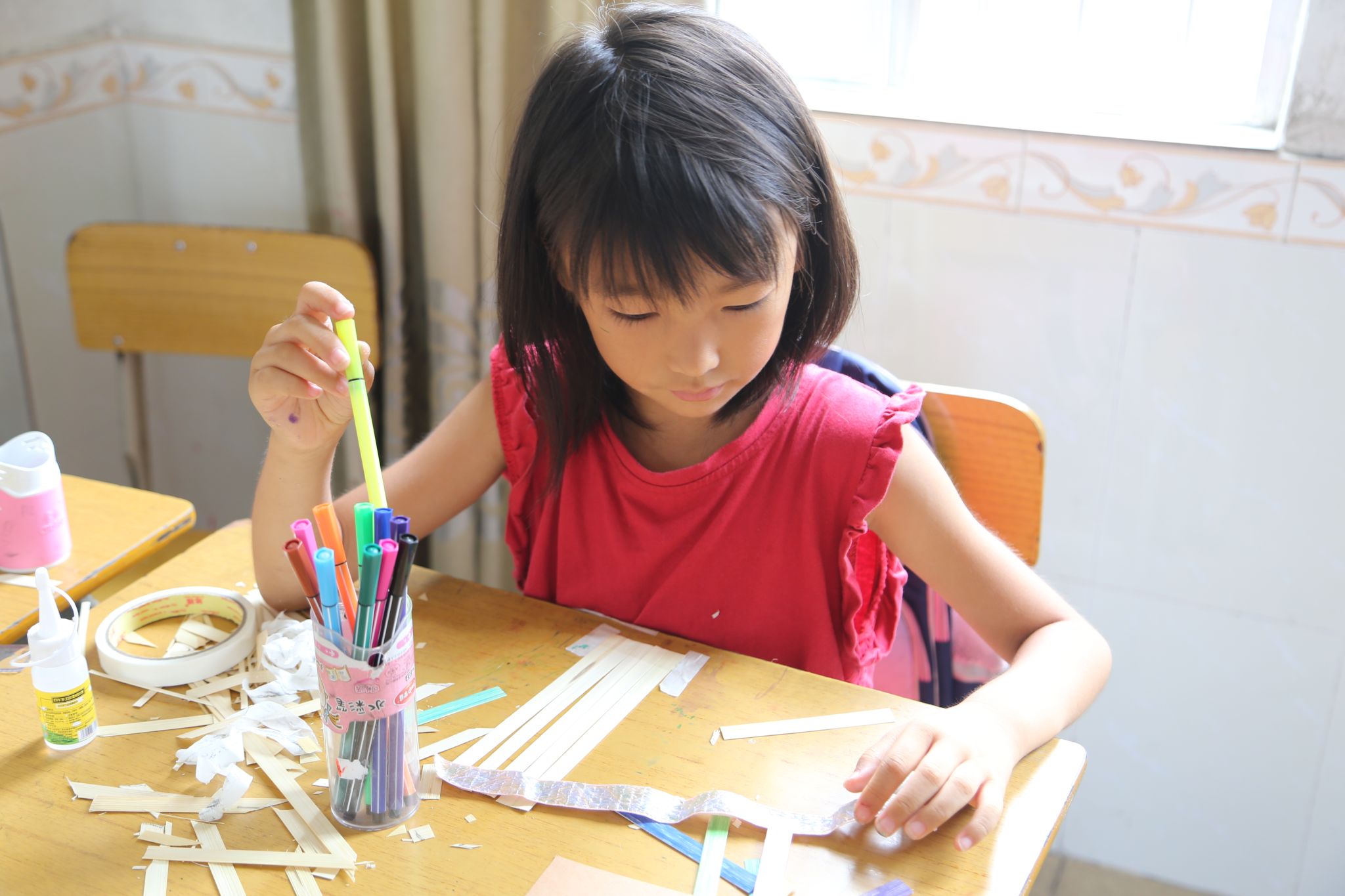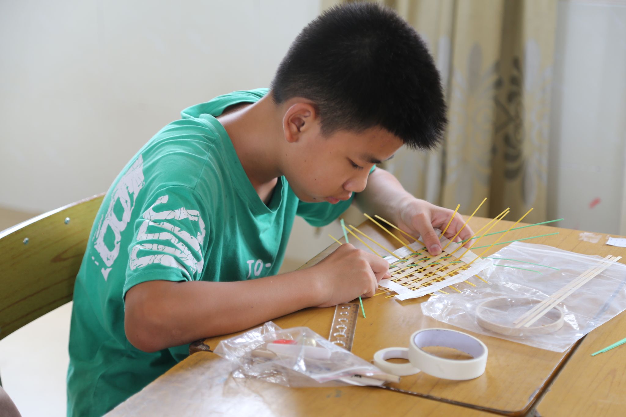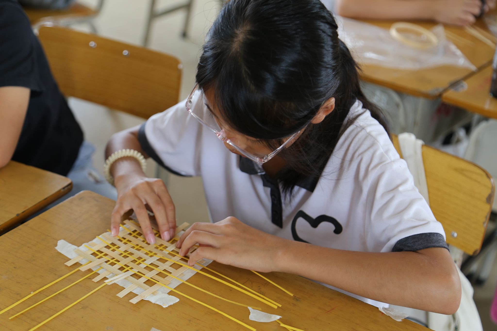 学生制作竹编手工(陆映柔 罗方彤 欧董焕摄)