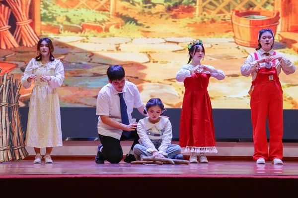 演出当晚,特殊教育系的同学们化身为故事中的角色,凭借精准流畅的手语表达、灵动自然的肢体表演,将角色的情感与性格展现得淋漓尽致。同时,精美的舞台背景与精心设计的服装道具相得益彰,为整个演出增添了浓厚的艺术氛围。一幕幕精彩纷呈的演出,仿佛将观众带入了一个个充满奇幻与温情的童话世界,同学们力求把角色演得鲜活生动,把故事讲得透彻动人,充分彰显了特殊学生自强自立、乐学尚思的优良品质,赢得了现场观众的阵阵掌声与喝彩。