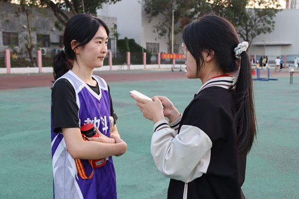 随着枪声的响起,运动员们如离弦之箭般冲出起跑线。吴京潼同学从起跑前就展现出强大的爆发力。蹬地、摆臂、加速,每一个动作都利落干脆,她如利剑般向前飞奔而去。绷紧的肌肉,咬紧的牙关,展现的是作为运动员的韧劲和坚持。运动场上烈阳直射,观众席上热情似火。观众席上的呐喊声和加油声此起彼伏,鼓点般的掌声与运动员的脚步声交织着,将赛事推向了高潮。目光转向第八道赛场的陈若纯同学,她目光如炬,步伐铿锵。虽然稍稍落后也不气馁,一鼓作气,奋力追赶。双腿交替中带起阵阵疾风,拼力奔向终点线。最后,两名运动员都没有辜负日复一日的艰辛训练,分别获得了第三名和第七名的好成绩。