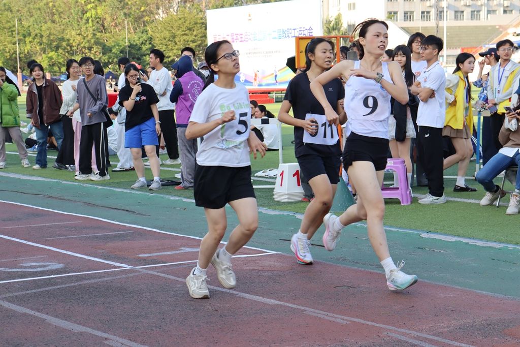 赛程后半段,体能消耗逐渐加大,竞争愈发激烈。毛春桃顶住身体疲惫,凭借日常训练积累的耐力持续向前,在激烈的比拼中稳步前行。最后100米冲刺阶段,她迸发全部潜能,摆臂加速,奋力向终点发起冲击。赛道旁,教科院师生组成的助威团呐喊声、加油声此起彼伏,化作她奋勇向前的强大动力,陪伴她冲过终点线。