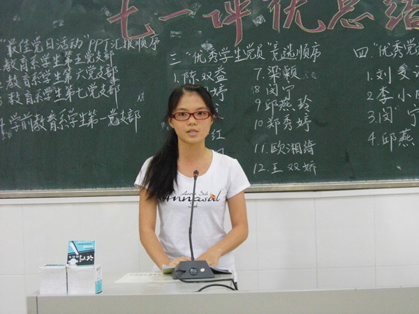 竞选环节结束后,卢祖琴老师对本次评优大会作总结发言,使在座的学生党员受到很大的启发和鼓舞。她充分肯定了各支部的工作成果,并建议各支部开展的党日活动能密切结合专业特色,丰富活动内容。也希望学生党员要以此为新起点,不断前进、戒骄戒躁,发挥党员的先锋模范作用。