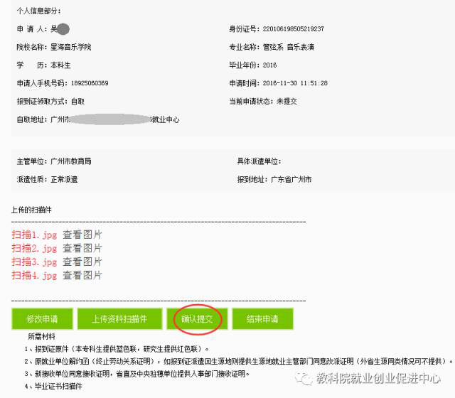6、提交纸质材料并等待审批。学生可通过直接提交或邮递方式向学校提交改派的纸质材料。并可在网上改派申请的页面查询办进度。