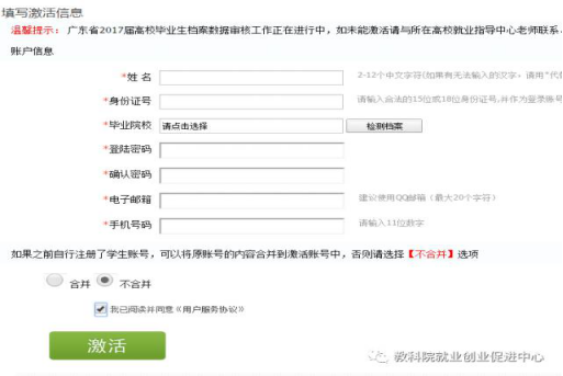 1、激活账号(若毕业生账号已激活,可跳过此步)。打开大学生就业在线网站(www.gradjob.com.cn),在首页的左中位置找到“激活账号”按钮进入激活页面,在激活页面填写详细个人信息。激活账号后可在首页登录界面登录,账号为身份证号,密码为激活时设置的密码。