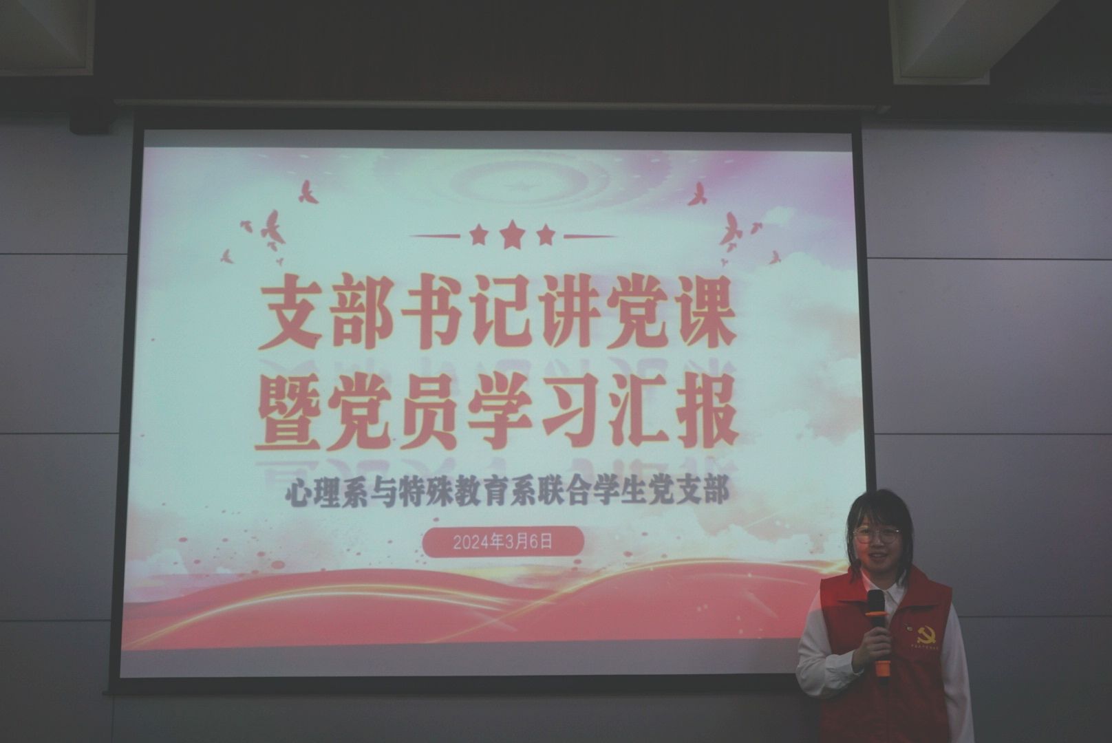 3月6日,教科院心理系与特殊教育系联合学生党支部于教四C栋408室召开了支部书记讲党课暨党员学习汇报会。心理系与特殊教育系联合学生党支部书记苏贵老师、该支部正式党员和预备党员参与了大会,叶铭桐同志主持本次会议。