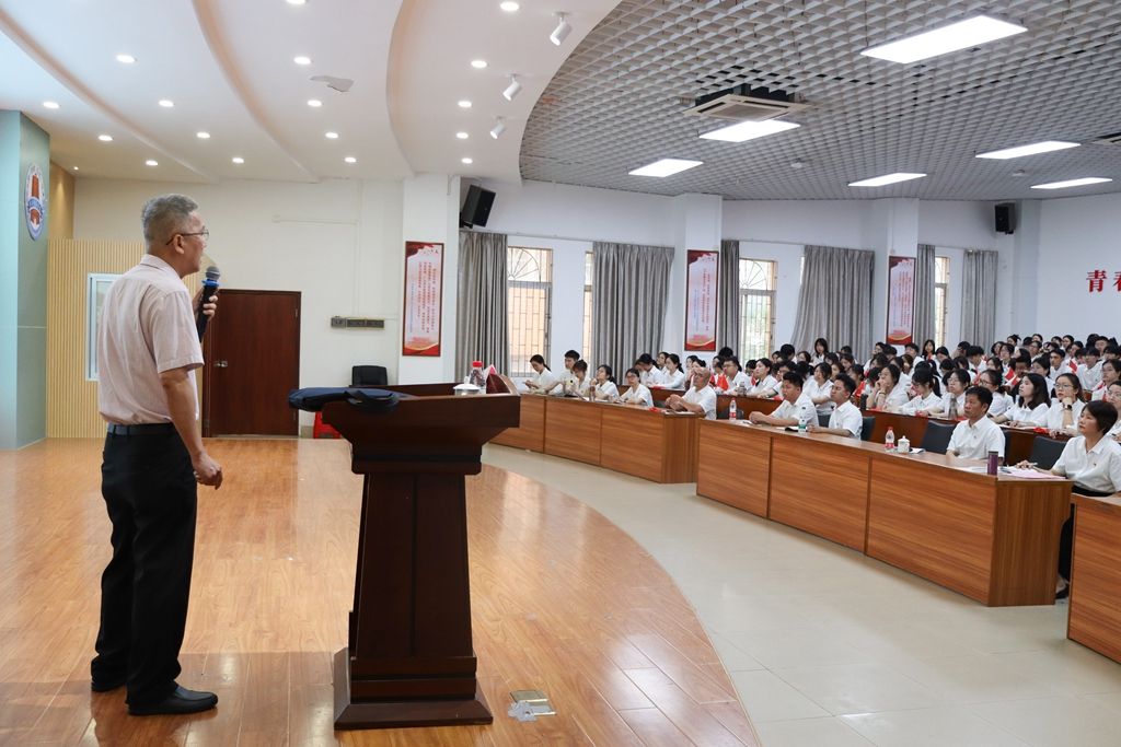 党课伊始,陈国威介绍了学校演变的简史。通过展示学校第一届师范类毕业生的同学录,陈国威考证了学校1904年的师范教育起点,揭示“百年师范”并非空口无凭。为还原真实校史,他踏遍档案馆,搜集翻阅当时史料,厘清校长更迭、校名变迁与校址迁移的脉络。他感慨道,从雷州中学校到如今的岭南师范学院,学校一步步从中等教育走到高等教育,这一变迁过程虽然艰辛,但办学从未中断,而对于校史梳理,仍需做很多工作。