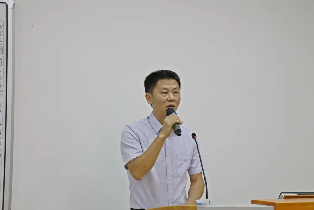 湛江市觉民中学校长卞裕健作为学员代表进行发言。他表示很高兴能够参加此次培训学习,并感谢教科院及相关领导的精心组织和安排,承诺在培训期间,明确目标,自觉学习,做到工作学习两不误;严守纪律,学思结合,满载而归。