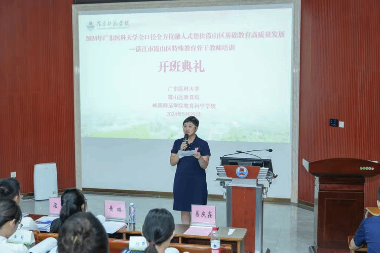 广东医科大学高等教育研究与教师发展中心主任王瑾在致辞中指出,岭南师范学院的专业优势和特殊教育经验为本次培训提供了有力保障。她相信通过多种形式的学习,学员们的能力将得到显著提升。同时,她对学员们提出三点建议:一是充分认识培训工作的重要性;二是转变角色,加强与专家的交流学习;三是处理好学习与工作的关系,高质量完成学习任务。