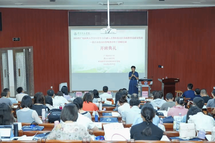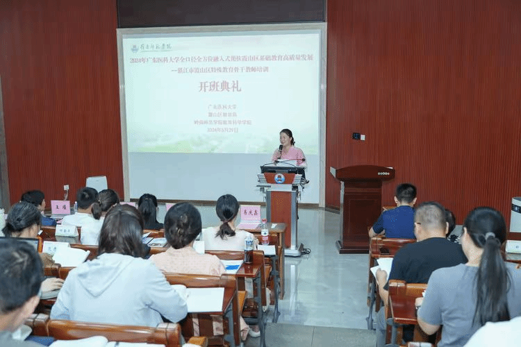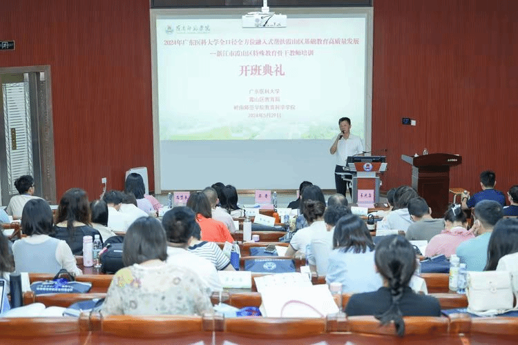 2024年5月29日上午,由广东医科大学主办、岭南师范学院教育科学学院承办的“湛江市霞山区特殊教育骨干教师培训”在岭南师范学院顺利开班。此次培训旨在全口径、全方位融入式帮扶霞山区基础教育的高质量发展。