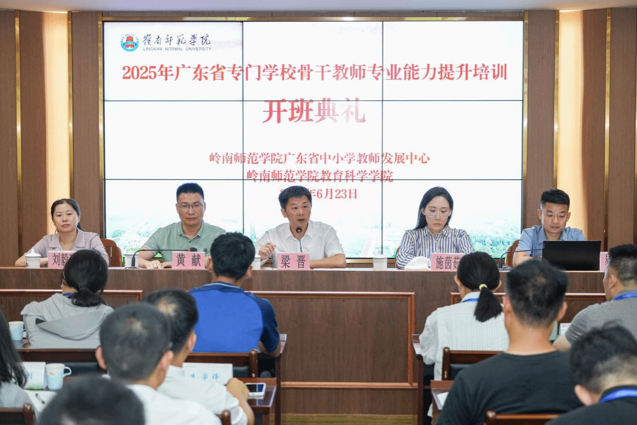 6 月 23 日上午,2025 年广东省专门学校骨干教师培训班开班典礼在岭南师范学院举行。岭南师范学院教育科学学院党委梁晋书记等相关人员及全省 50 名专门学校教师出席。