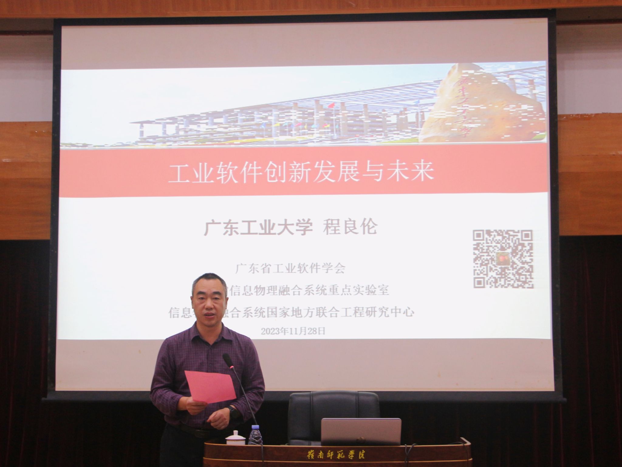 11月28日下午,计算机与智能教育学院邀请了广东工业大学程良伦教授于图书馆学术报告厅开展了以“工业软件创新发展与未来”为主题的学术报告会。学院院长杨俊杰教授主持报告会。