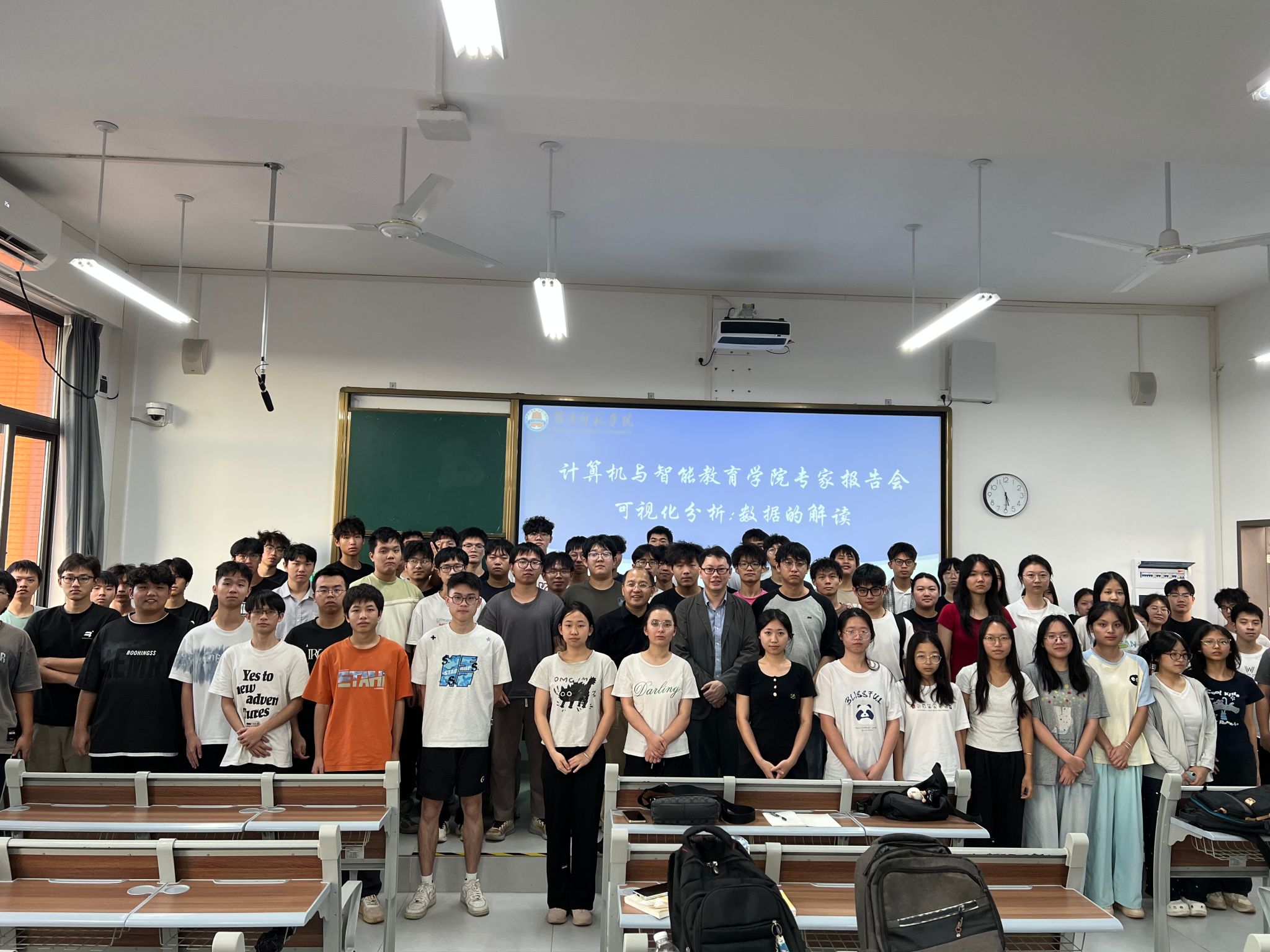 此外,他还向同学们介绍了当前数据可视化领域的一些发展趋势,包括可解释人工智能可视化、多模态数据可视化以及智慧城市相关应用,为学生在未来科研与工程实践中提供了新的思路与方向。周俊杰副教授鼓励同学们注重培养跨学科能力,将人工智能算法、可视化技术与行业应用需求相结合,持续提升自身综合素质。