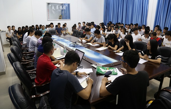 为了更有秩序开展2016年迎接新生入学工作,9月8日晚,信息工程学院于雷阳楼b栋101室召开迎新动员会。参加动员会的有信息学院党委林荣新副书记,信息学院辅导员徐灵老师,刘利丹老师,屈志奋老师,潘堪达老师,还有各机构干部以及14级、15级班长。会议由屈志奋老师主持。