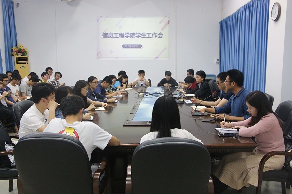 3月30日,信息工程学院在雷阳楼101室召开学生工作会。学院党委吴万副书记、辅导员屈志奋、彭东丽、刘利丹、潘堪达、张茜老师以及各年级班长、学生机构主要干部出席了本次会议。会议由屈志奋主持。