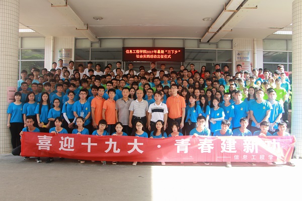 7月1日,天朗气清,信息工程学院于雷阳楼b栋门口举行2017年暑期“三下乡”社会实践活动出征仪式。信息学院党委林汉书记、吴万副书记等领导老师及8支三下乡队伍成员出席了现场。刘利丹老师主持此次出征仪式。