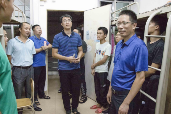 林汉书记、吴涛副院长一行到博雅210栋进行走访。重点查看宿舍桌椅等硬件、环境卫生、通风防火措施等情况。接着林书记以闲聊的方式亲切与学生交流,了解学生生源地、兴趣爱好、学习计划等情况,并嘱咐同学们:一要珍惜青年时光,树立考研目标,少玩游戏,积极沉淀,学会在岭师扎根奋斗;二要提高安全意识,注意防盗防骗,时时刻刻把人身财产安全放在第一位;三要加强与辅导员老师的沟通交流,遇到问题要及时向老师和学院反映。吴涛副院长就学院专业优势、就业情况、学院师资等内容与同学们进行交流。走访过程中,发现2间新生宿舍已快速调整暑期状态,约好集体学习,为考研做充足准备。