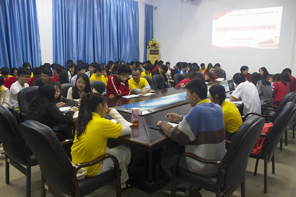 为推动团学工作在新时期的创新发展,信息工程学院于11月20日晚在雷阳楼b栋101室召开了关于“新时期高校团学工作的创新模式”主题研讨会。辅导员刘利丹、黄秋洁参会,院团委、学生会、社联会全体干部以及各团支部团支书出席了本次研讨会,会议由刘利丹主持。