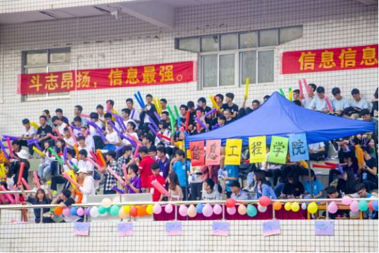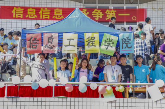 据悉,本次运动会共有20个学生代表团781名运动员参赛,其中信息工程学院共有50名学生运动员参与到其中挥洒青春的汗水。在我院全体师生的共同努力下,信息院以139分的团体总分荣获团体第三名和体育道德风尚奖。同时,《我和我的祖国》集体舞比赛也获得二等奖。更令人欣喜的是男子4×100米接力比赛再次夺得金牌,创造四连冠的佳绩。