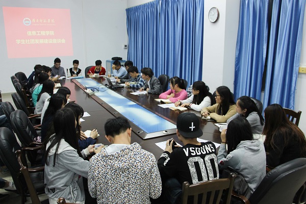 为积极响应学校应用型学科专业转型发展的要求,发挥学科专业社团的育人优势,营造良好的校园社团文化,12月7日晚,信息工程学院在雷阳楼101召开学生社团发展建设座谈会。参加座谈会的有计算机开发研究协会、电子爱好者协会、教育技术协会、动漫协会、电气工程协会等8个学生社团。学院党委吴万副书记出席了座谈会,辅导员刘利丹老师担任座谈会主持人。