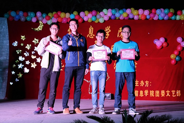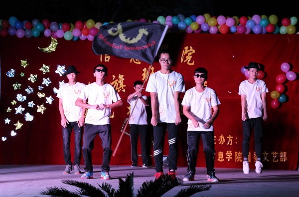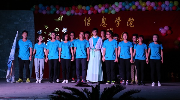 在精彩纷呈的活动中,各班用独具特色的表演将自己班级的班服班旗展现在观众面前。计本班在表演中用别具一格的皮影戏来呈现班级的文化意蕴,精彩的人影表演牢牢抓住了大家的眼球。16网络班的男生版千手观音表演,再配上神曲《忐忑》的节奏,神奇的视听效果,给观众带来无限想象!还有16外包1的“群魔乱舞”,在三名身穿裙子的美少男的带领下,他们集体跳起了《咋啦爸爸》舞蹈,在无厘头的搞笑舞蹈中,新生们热情奔放的一面充分展现出来了。当然还有数媒的《Miracle》,如同名字一般,数媒的演出就像奇迹一样充满惊喜,他们活力十足的街舞引爆全场,他们奇特梦幻的面具舞营造的气氛又如同魔术表演一般神秘,但又不失艺术的优雅。大学生的青春与活力在本次比赛中被展露无遗,而信息学子们的无限创意与魅力更是让人惊喜连连。