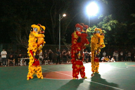 中场休息时,一场精彩的舞狮表演为比赛增添了别样的色彩。三只色彩斑斓的狮子舞动着矫健的身姿,在场地上展示着华丽的舞技。他们的舞步时而威武有力,时而灵动轻盈,仿佛在向观众展示着一场华美的舞蹈。